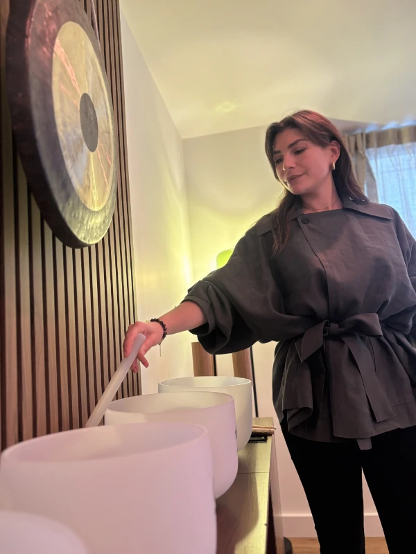 La sonothérapie est une pratique qui utilise les vibrations du son (bols, diapasons, gongs…) pour favoriser la détente et réharmoniser le corps.